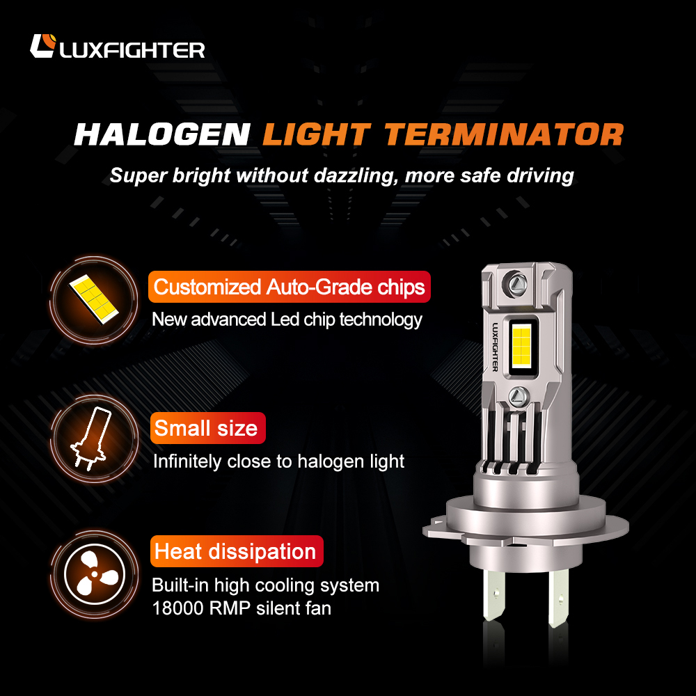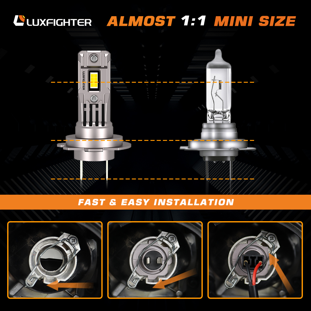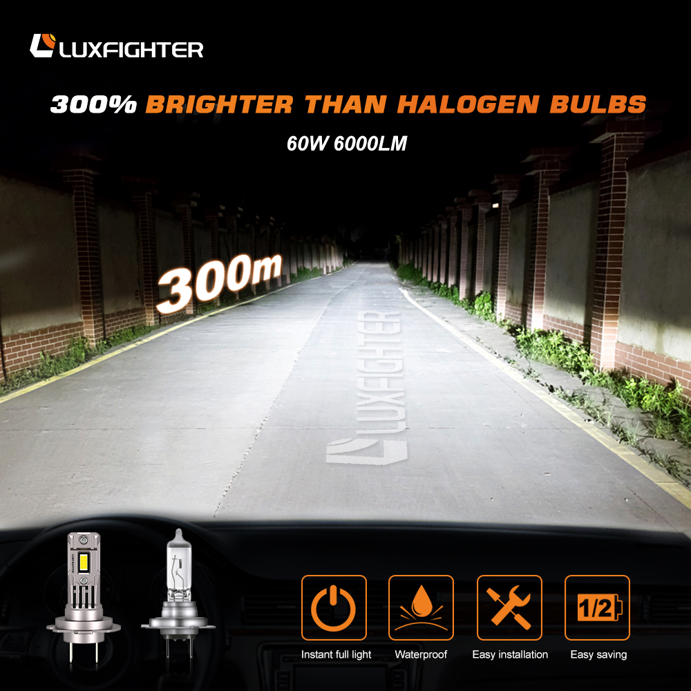 Luxfighter Q26 H7 LED προβολέας βολβός 60W 6000lm 1: 1 στο φως αλογόνου, αλλά φτάνει μέχρι και 60W καθώς και υψηλή φωτεινότητα. Η ίδια μέθοδος εγκατάστασης στο φως αλογόνου κάνει εύκολη και βολική για να την αντικαταστήσετε μόνοι σας. Το Luxfighter είναι το κορυφαίο εμπορικό μας σήμα για την αγορά φωτισμού εκσυγχρονισμού αυτοκινήτων, που ειδικεύεται στην άμεση λύση Plug & Play, προκειμένου να προσφέρουμε καλύτερη εμπειρία στους καταναλωτές κατά την οδήγηση.