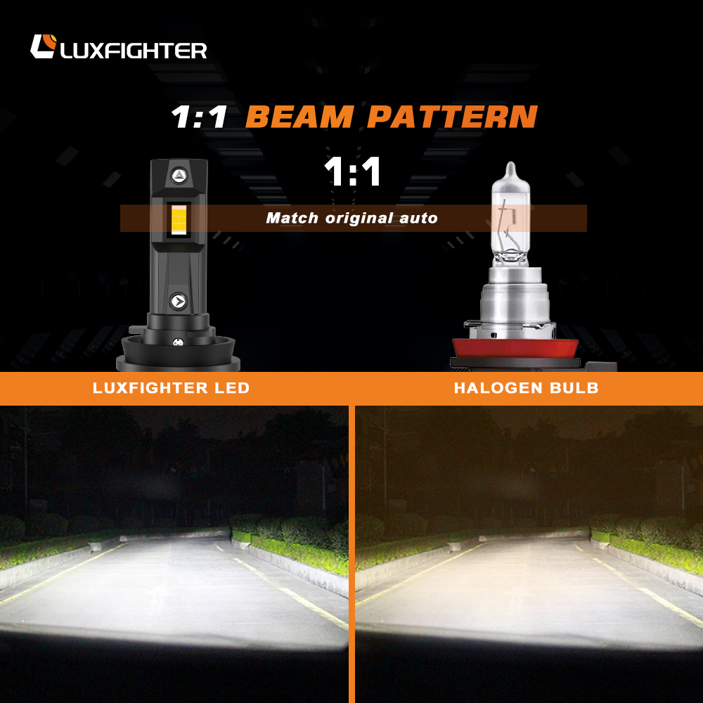 2. 1: 1 Τέλεια μοτίβο δέσμης, κατακόρυφα ευθυγραμμισμένα συστατικά LED Σχεδιασμός, τέλεια μιμείται το αρχικό μοτίβο, παρέχοντας ευρύτερη γωνία και μακρύτερα φωτεινή κλίμακα στο δρόμο. Χωρίς τυφλές κυκλοφορία